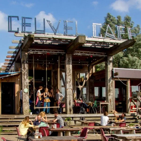 De Ceuvel is een van de meest duurzame en vernieuwende stedelijke experimenten in Europa, met een gezellig en uitnodigend café-restaurant en een groot buitenterras.